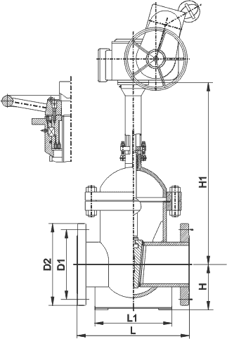 Габаритные размеры и вес задвижки 30с999нж Ду50 Ру25